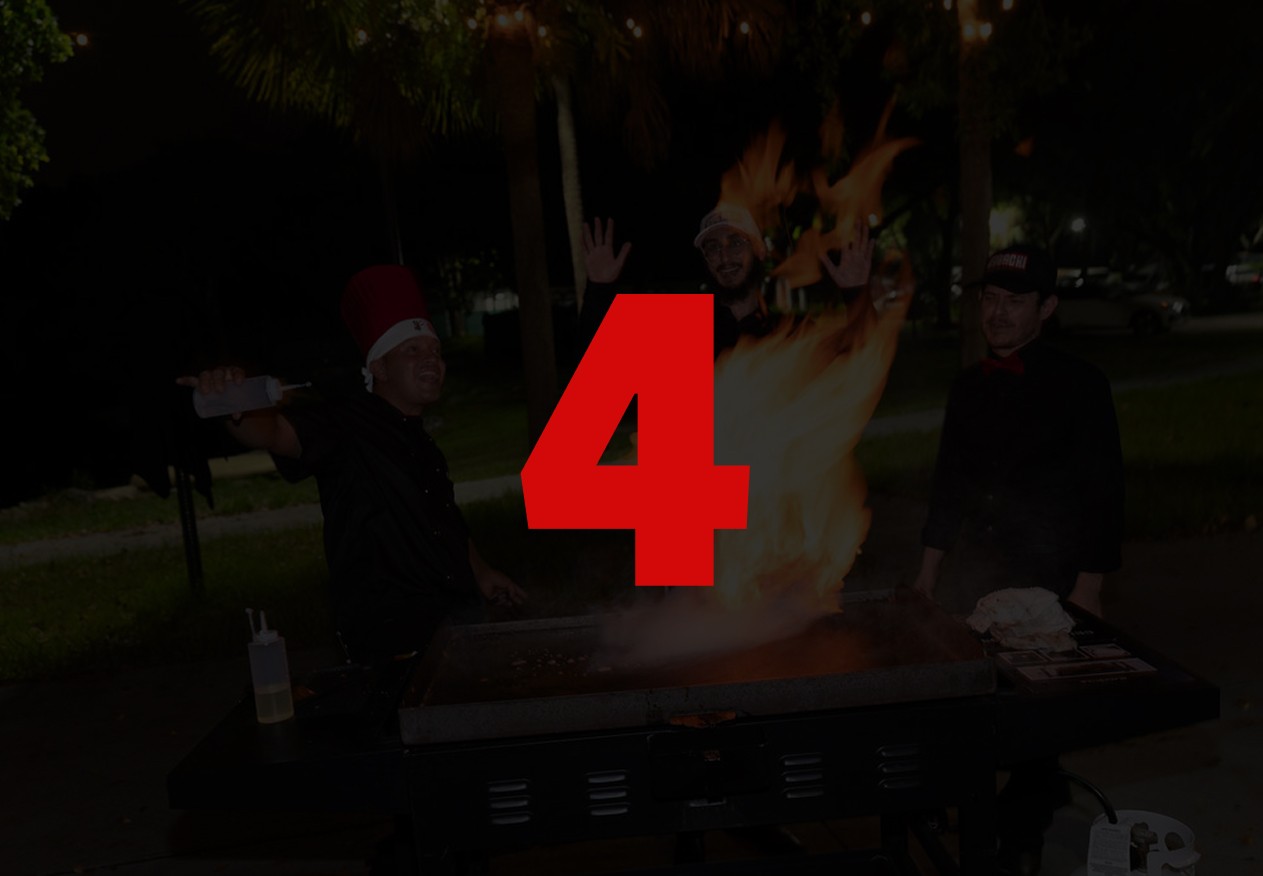 Watch your meal come to life. Our chef cooks on-site and brings the full experience with flair, fire, and crowd-pleasing moments that keep guests engaged from the first sizzle to the final bite.